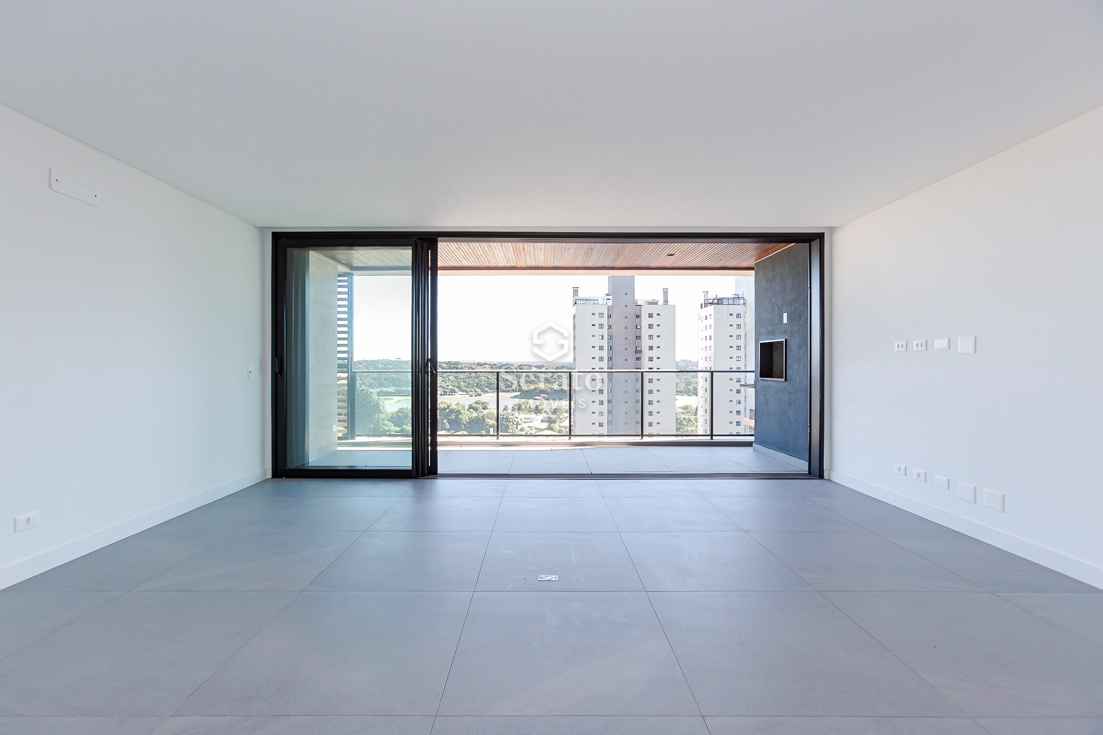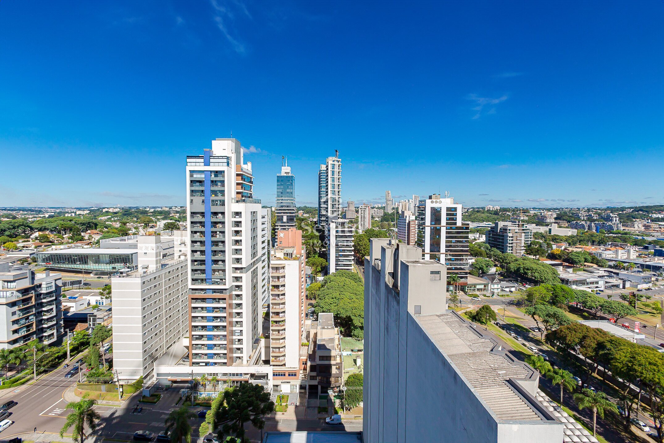 O grande destaque aqui é essa varanda incrível, com vista aberta para o Parque Barigui… com um pôr do sol espetacular.