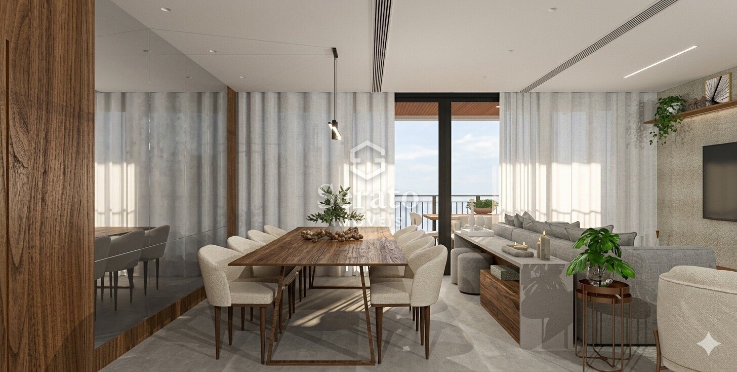 Ambientes amplos e bem distribuídos, com acabamentos de alto padrão em todos os detalhes. Sala integrada à varanda com nivelamento de piso, porcelanato 90x90cm e churrasqueira a carvão. Além de suítes confortáveis com piso em madeira, banheiros refinados com mármore. Destaque para a excelente iluminação natural e isolamento acústico superior.