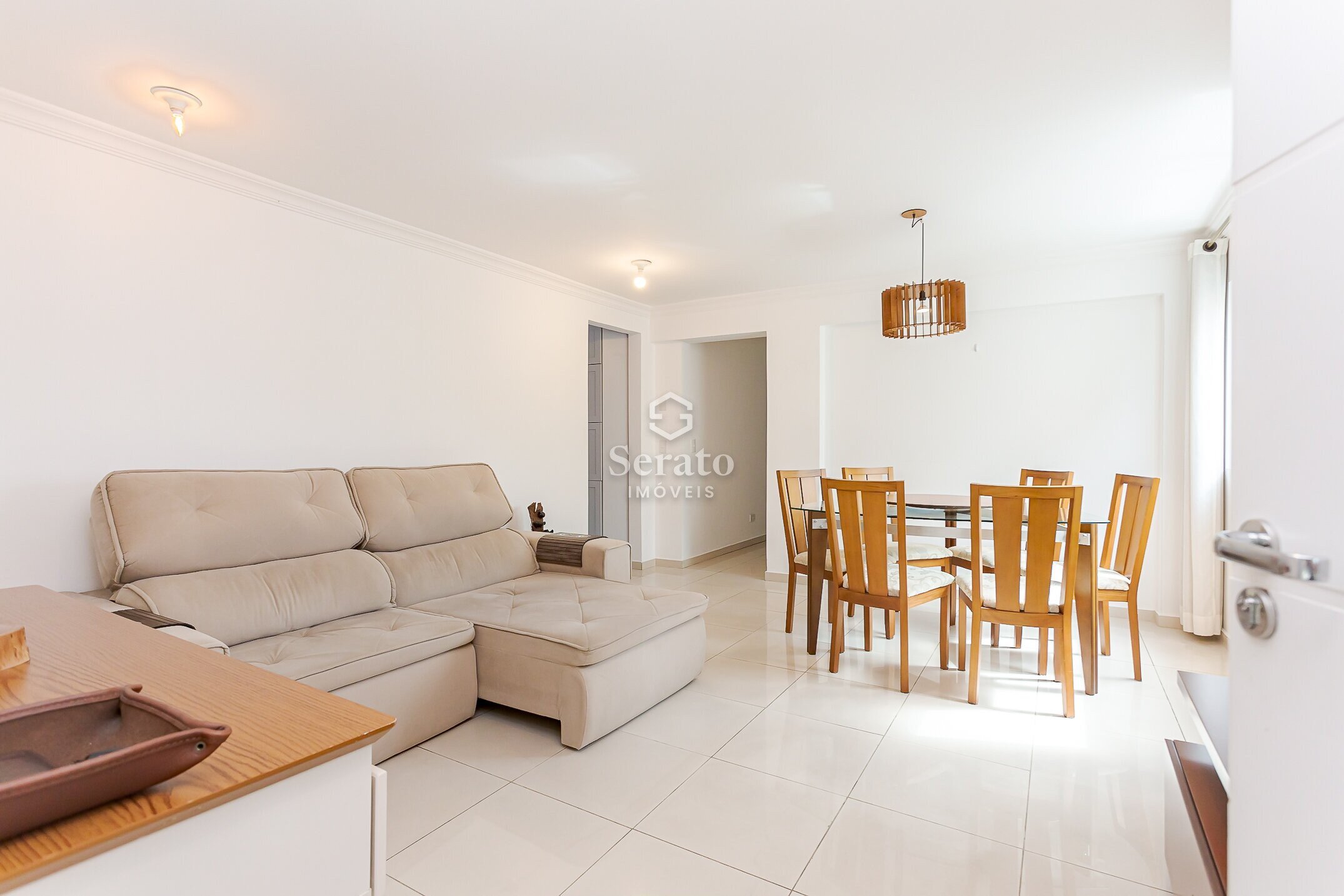 Os ambientes são bem distribuídos, com sala ampla para dois ambientes, cozinha com móveis planejados, lavanderia funcional e um dos quartos também equipado com planejados. A boa metragem é o grande destaque, proporcionando conforto no dia a dia e possibilidades de personalização.