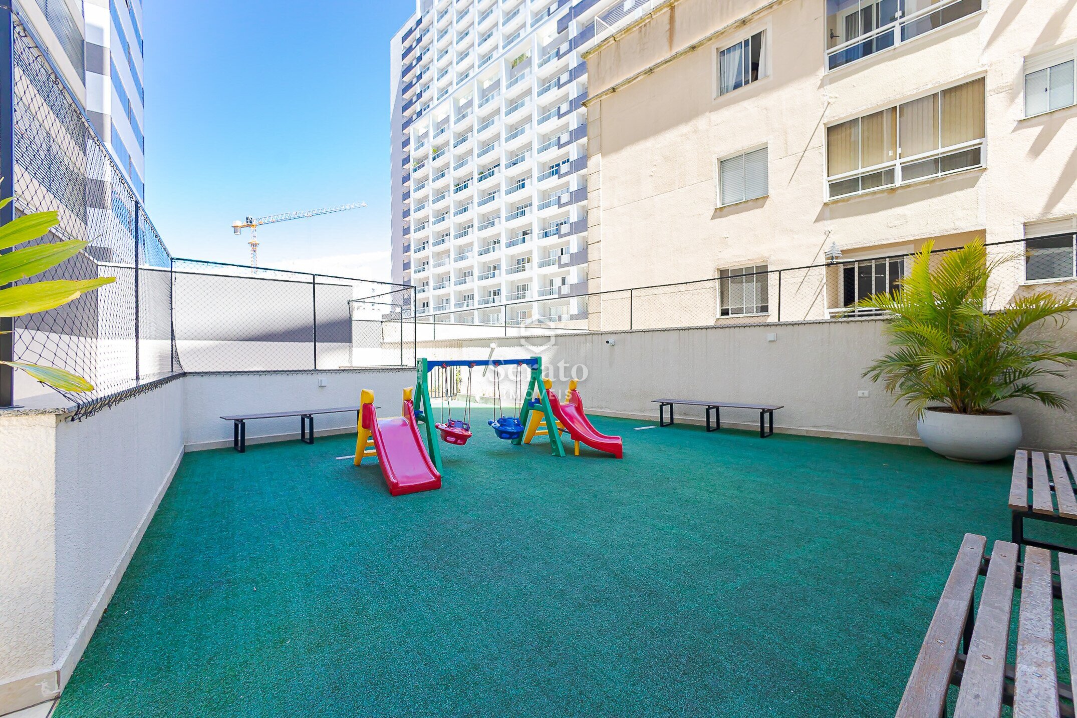 O condomínio Terrasse Créatif oferece portaria remota, salão de festas, sala de jogos, espaço gourmet, quadra esportiva, piscina coberta e aquecida, brinquedoteca, playground e academia — uma estrutura completa que garante lazer, comodidade e segurança.